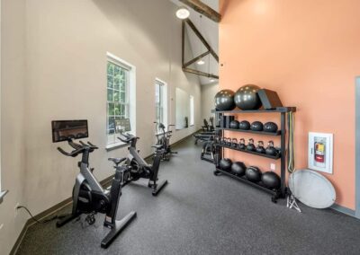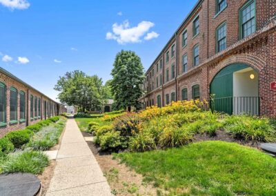 View the Sharples Works photo gallery and see for yourself what sets us apart from other apartments in West Chester Borough. Our apartment community retained several warehouse-style elements, including exposed timber and brick, and added modern warm, neutral finishes, hardwood flooring, and ample closet space. Each kitchen has dark wood cabinets and is outfitted with stainless steel appliances and white quartz countertops. Bathrooms have Hollywood-style lighting, authentic subway tiling, and sleek spill-proof white quartz. Sharples Works was designed to fit your lifestyle and offer you access to all the things that make your living space a home. Our West Chester apartments are pet-friendly and residents have access to an on-site fitness center and on-site parking. You can benefit from all these enriching amenities and more when you live in the heart of Downtown West Chester, PA.
